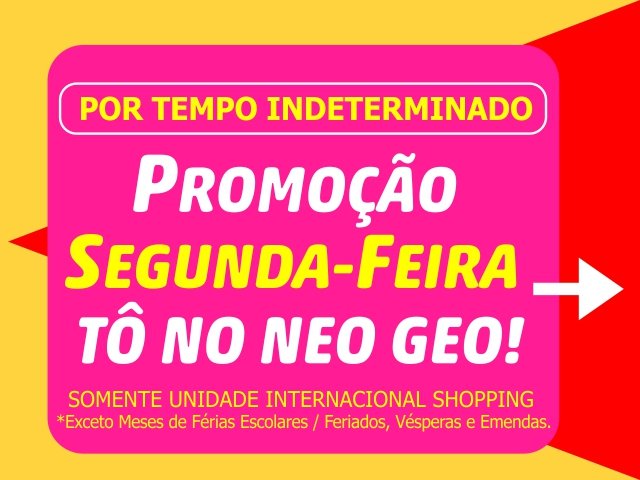 Promoções disponíveis para adquirir pessoalmente em todas as unidades Neo Geo Family;