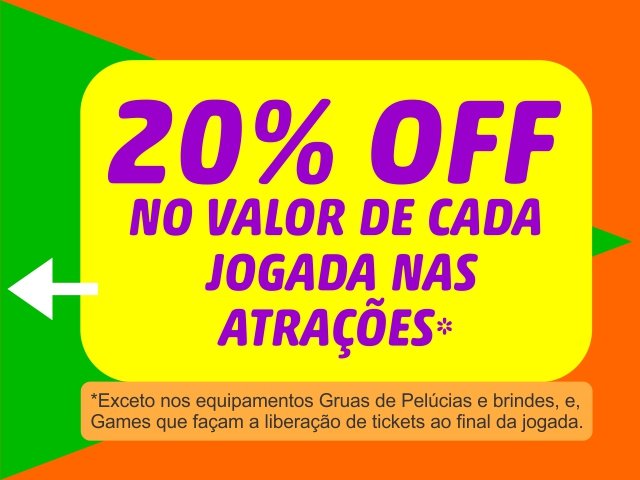 Nas unidades Praça da Moça e Fiesta os bônus não são válidos para equipamentos que liberam tickets, prêmios e fotos;